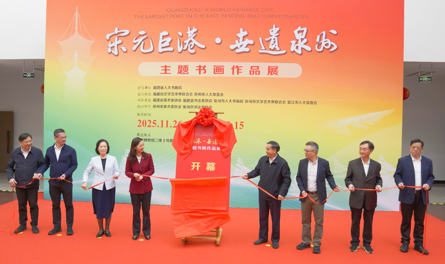 11月26日,由福建省文联、泉州市人大常委会联合主办,福建省美术家协会、福建省书法家协会、泉州市人大书画院、泉州市文联共同承办的“宋元巨港•世遗泉州”主题书画展在晋江市博物馆开展,本次展览集中展出从全国近千幅应征作品中精选出的140余幅书画精品。