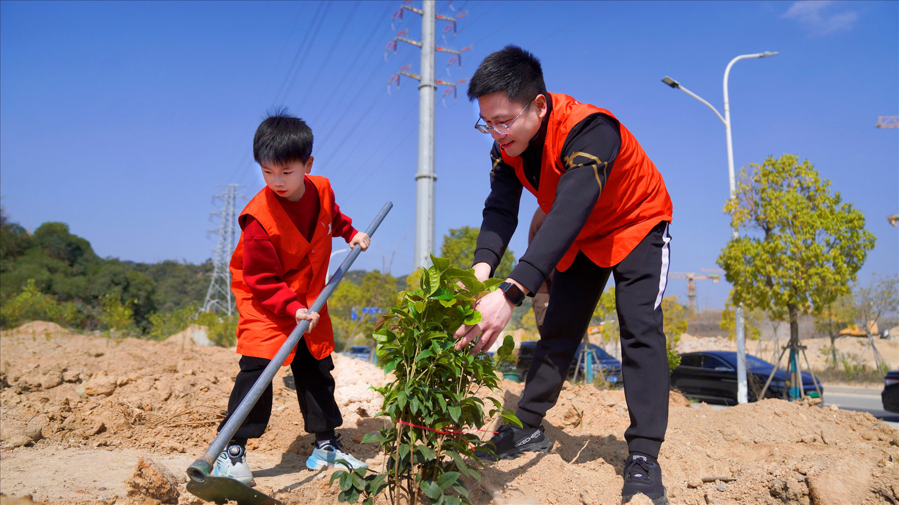 亲子共植新绿。