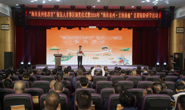3月31日,“海丝泉州推荐官”银发人才赛区颁奖仪式暨2026年“海丝泉州·文润桑榆”首期银龄研学活动在泉州市老年活动中心举行。活动围绕银发人才队伍建设和作用发挥,通过以赛聚才、以学育才、以用促才,推动银发人才工作更好融入文化传承、城市传播和文旅发展,为推进中国式现代化泉州实践凝聚“银龄力量”。