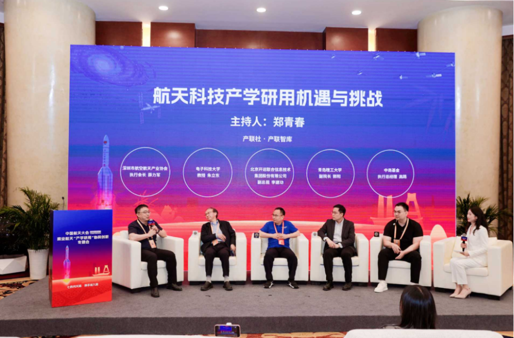 商业航天产学研圆桌讨论环节由“产联社·产联智库”郑青春主持,开运集团副总裁李建功与深圳市航空航天协会执行会长薛力军、电子科技大学教授朱立东、青岛理工大学机械与汽车工程学院副院长郭阳、中商基金执行总经理高路等嘉宾,围绕“航天科技产学研用机遇与挑战”核心议题,聚焦航天数据(如AOE)发展、商业航天细分赛道前景、人才培养等关键问题展开深度研讨,为产业发展建言献策、凝聚行业发展新知。
