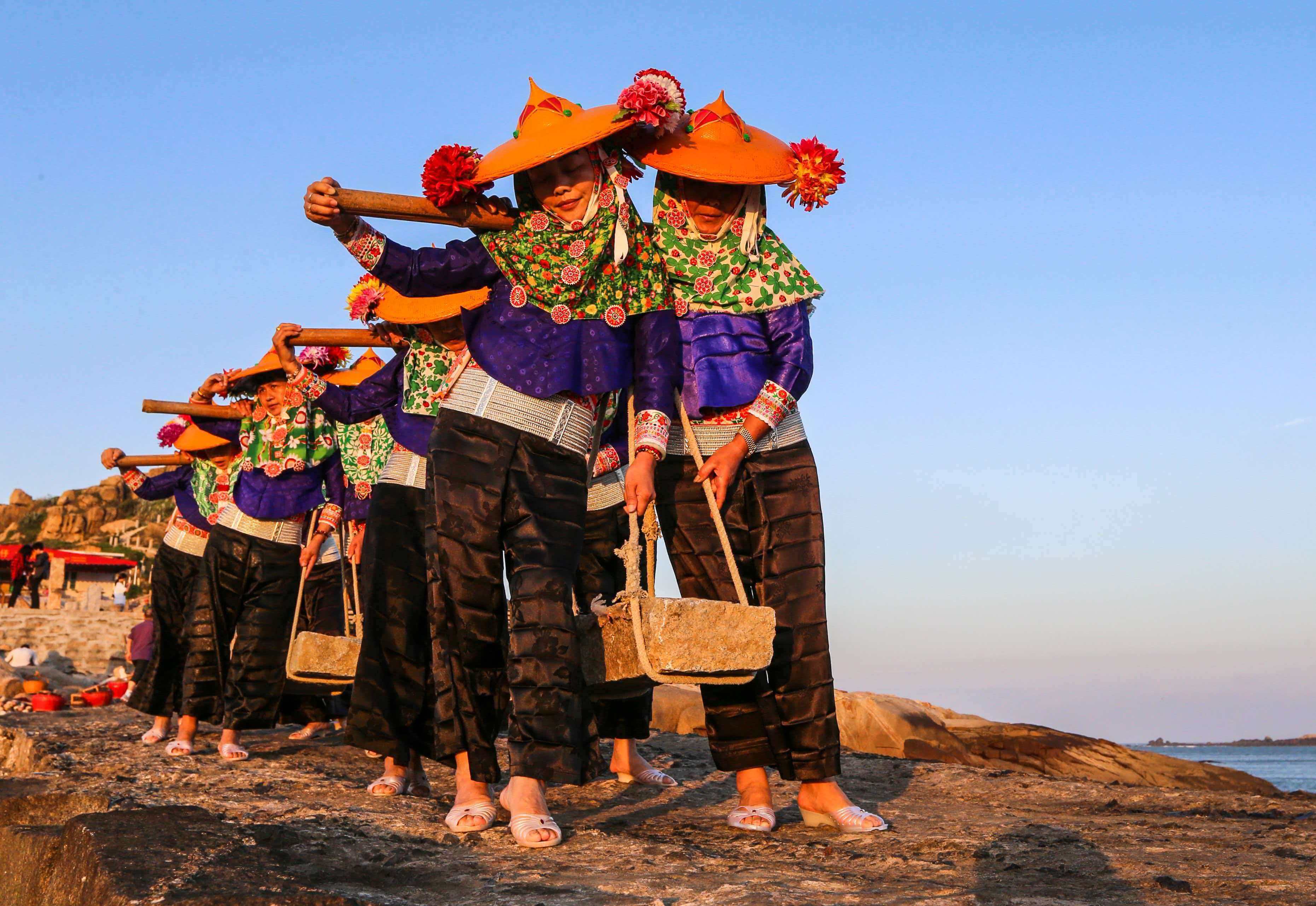 抬石头的惠女(陈英杰 摄)