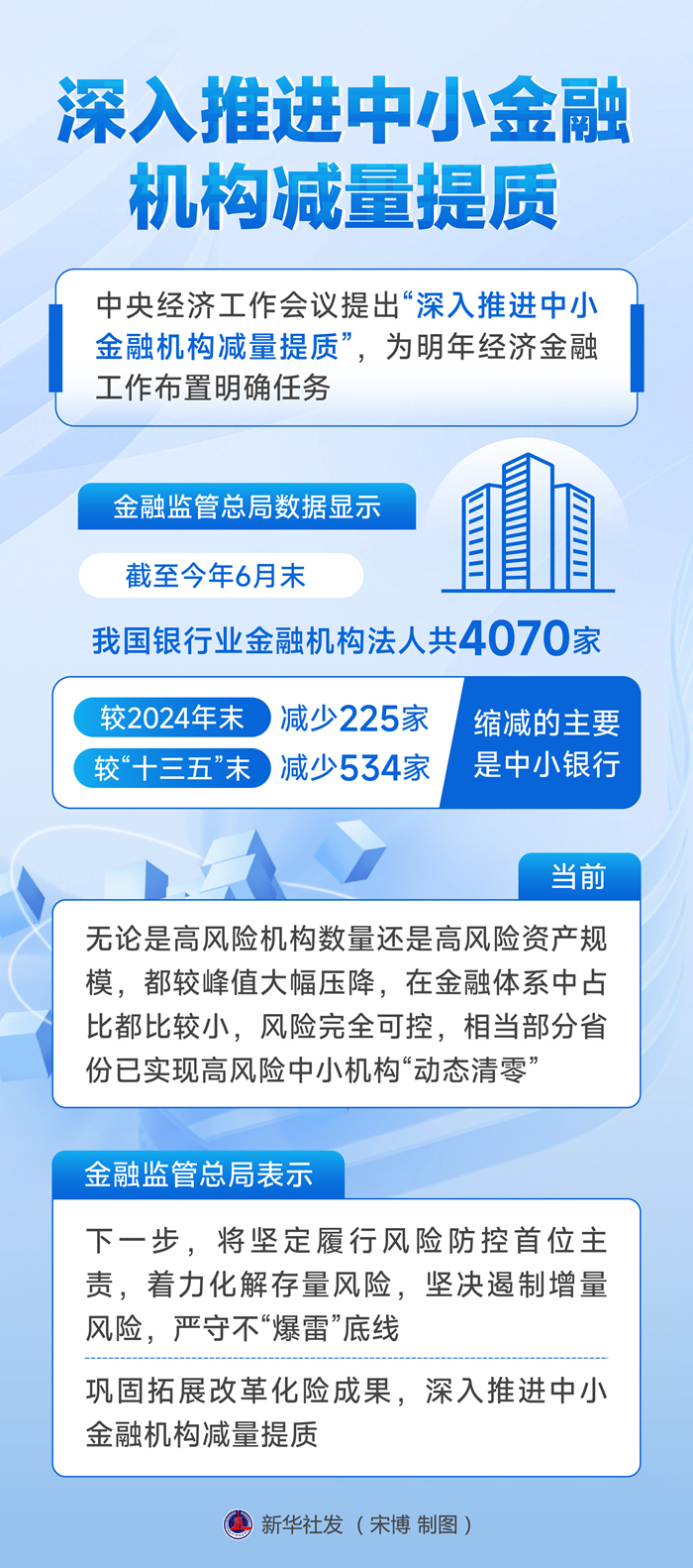 “明年是‘十五五’开局之年,实现良好开局意味着要推动经济实现质的有效提升和量的合理增长,这对金融服务提出更高要求。”娄飞鹏表示,中小金融机构减量提质,一方面要继续完善内部治理,提升风险管理能力;另一方面要推动扎根当地开展特色化经营,更好服务实体经济。