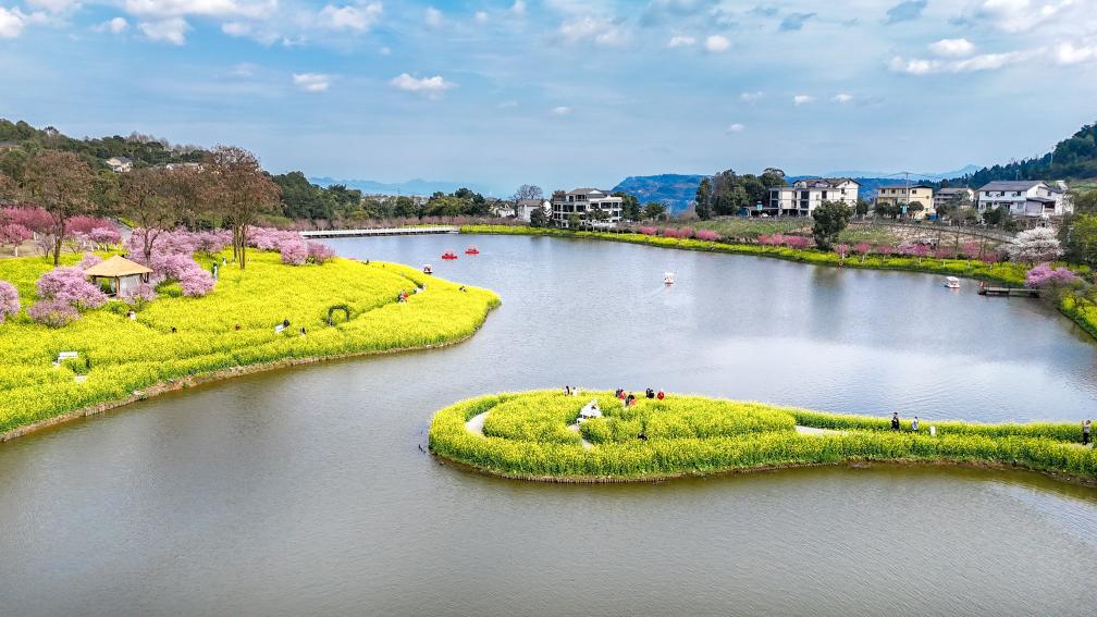 重庆市巴南区二圣镇云林天乡景区,游客畅游在花海中,感受浪漫春日。方霞 摄