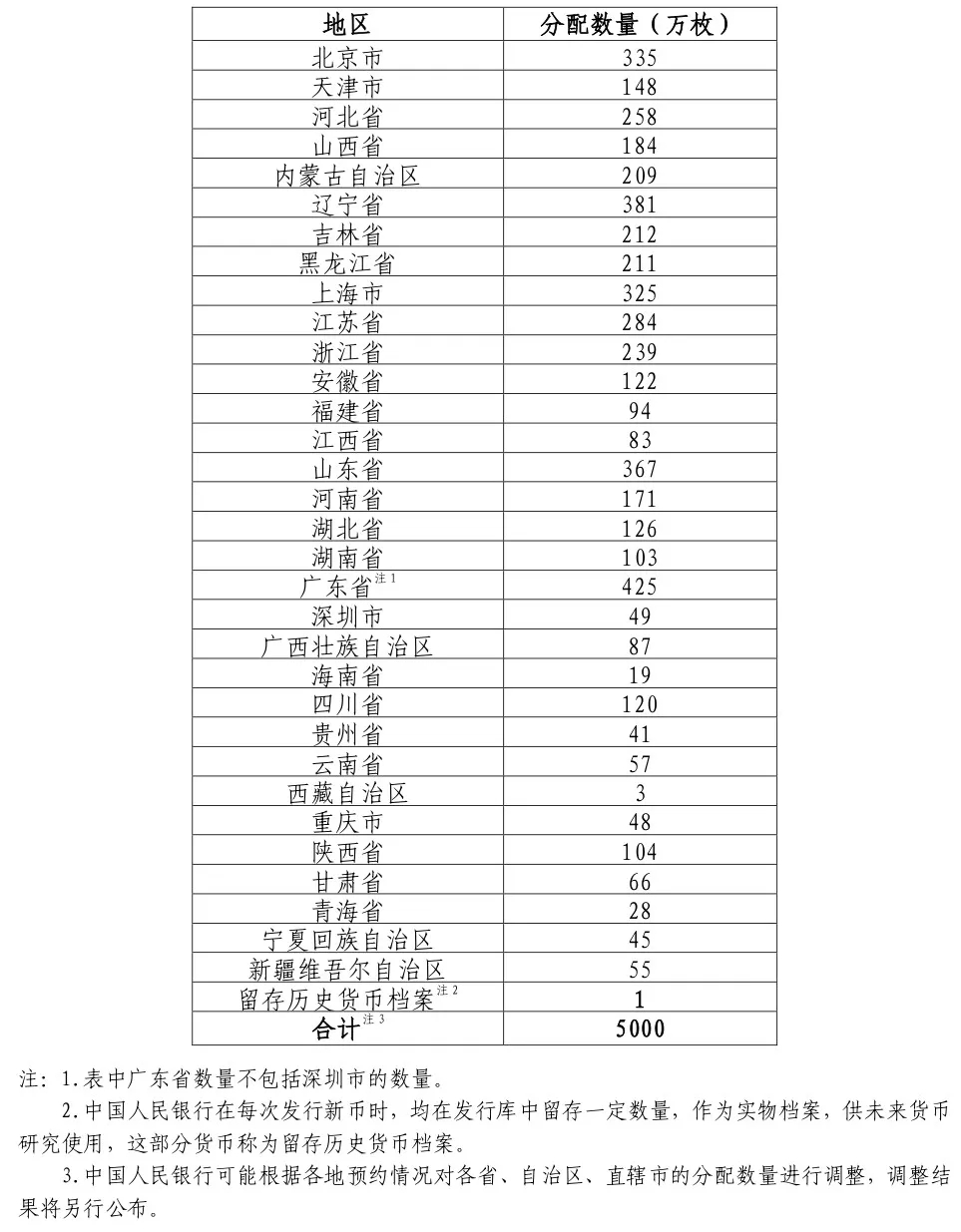武夷山国家公园双色铜合金纪念币面额为10元,直径为27毫米,材质为双色铜合金,发行数量为5000万枚。各省、自治区、直辖市分配数量如下: