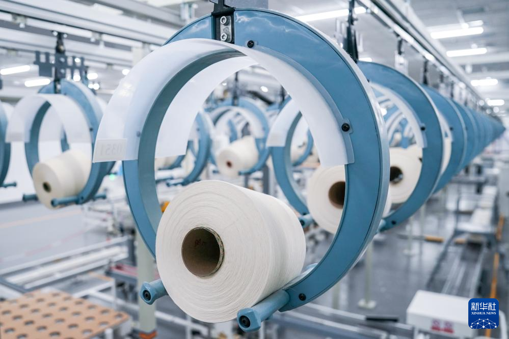 这里没有“千人纱、万人布”的喧嚣,没有来往的人工搬运,也没有漫天飞舞的棉絮。映入眼帘的,是一排排高速运转的数字化设备,是众多自动导引车在智能传输通道上穿梭自如,是数十万个带“芯”纱管在生产线上有序流转。