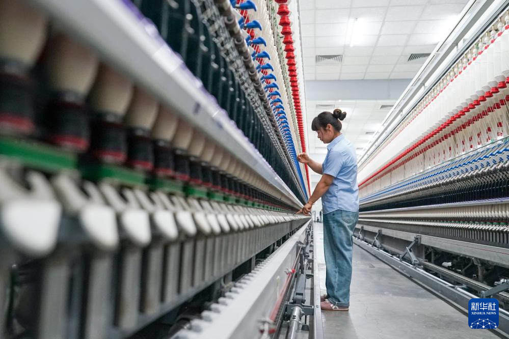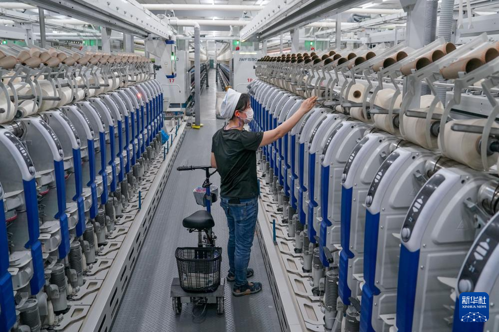 工人在江苏悦达纺织集团智能生产车间内工作(3月25日摄)。新华社记者 李博 摄