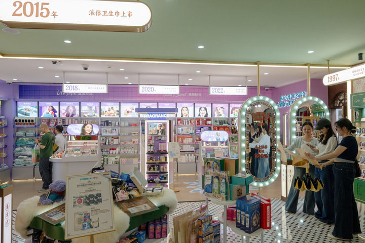 3月26日,人们在位于广州市荔湾区沙面岛的屈臣氏打卡、购物。新华社记者 刘梦琪 摄