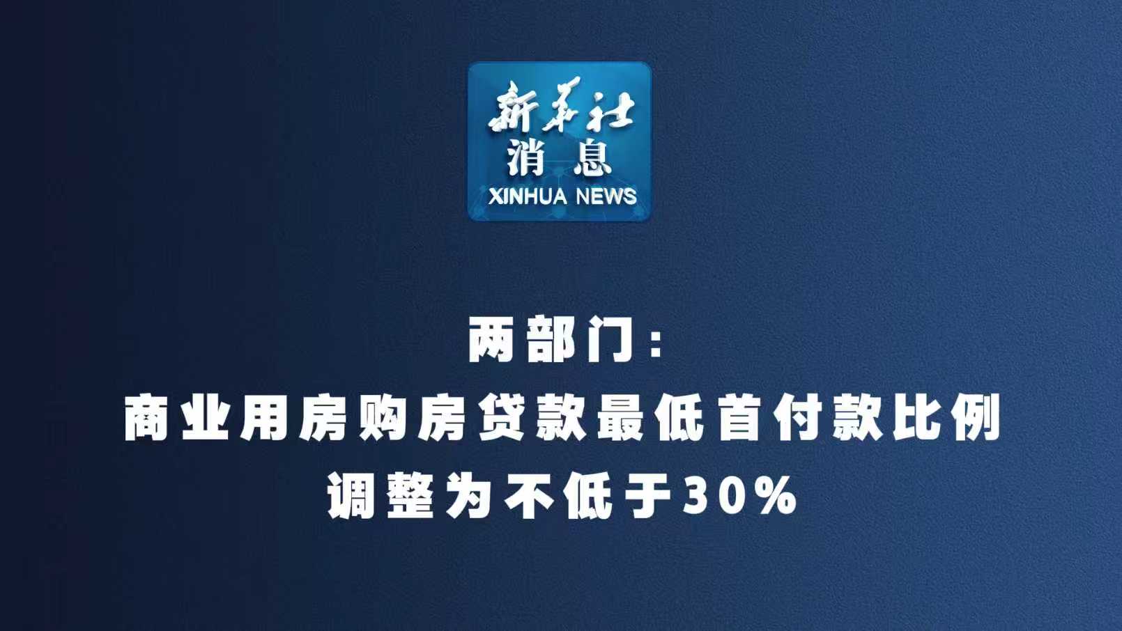 两部门:商业用房购房贷款最低首付款比例调整为不低于30%