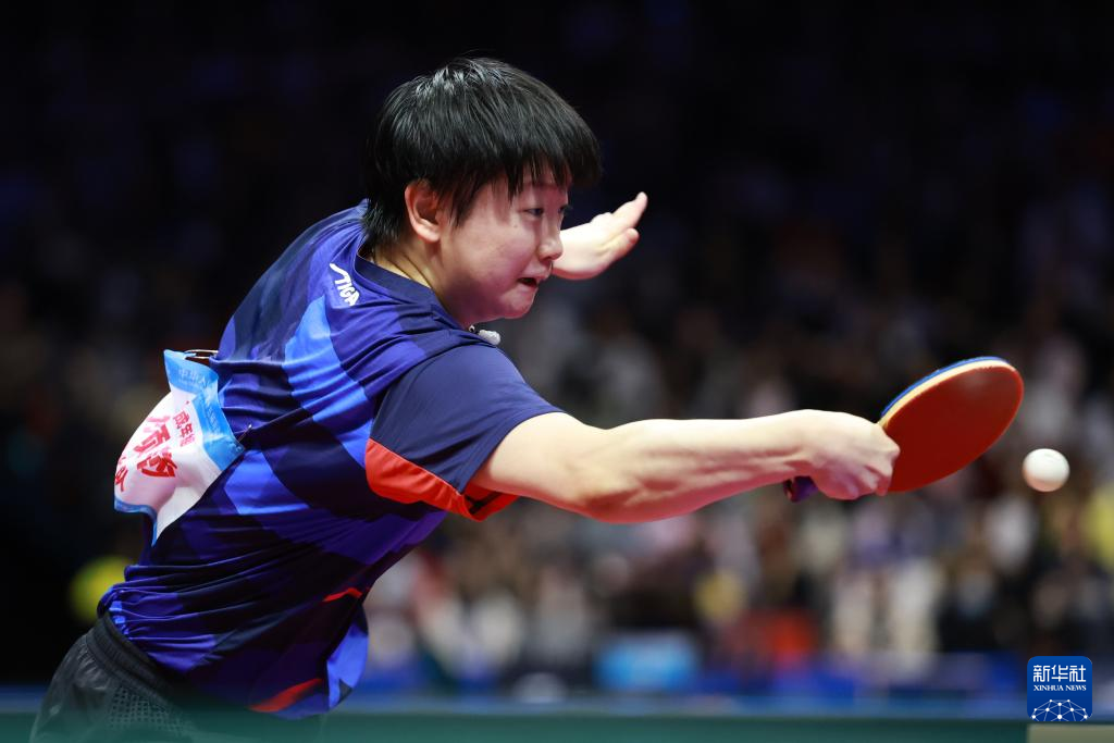 11月16日,黑龙江队选手王曼昱在比赛中回球。