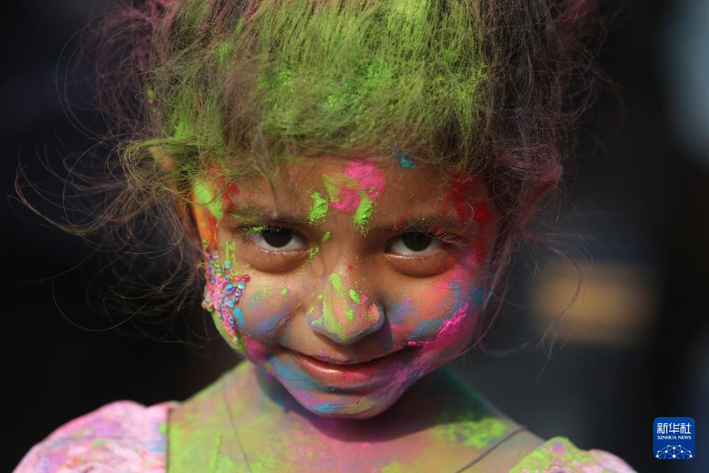 洒红节也叫胡里节,人们在节日期间互相涂抹颜料,迎接春天的到来。