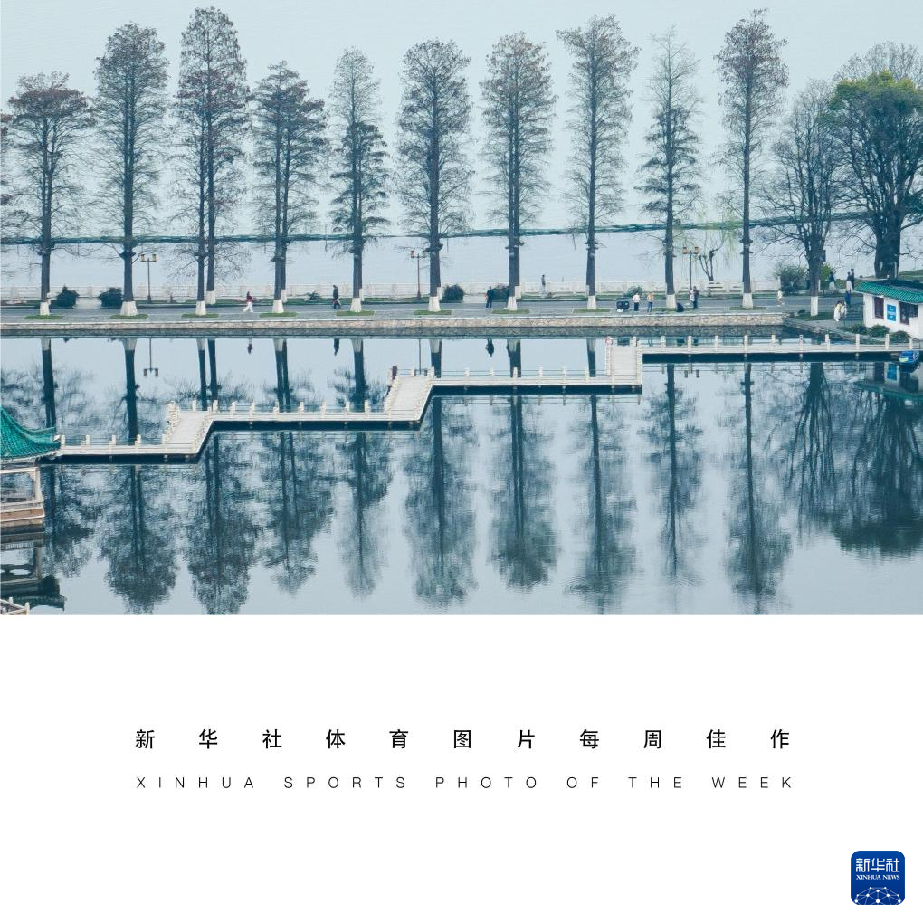 市民在武汉市东湖绿道锻炼(3月22日摄,无人机照片)。