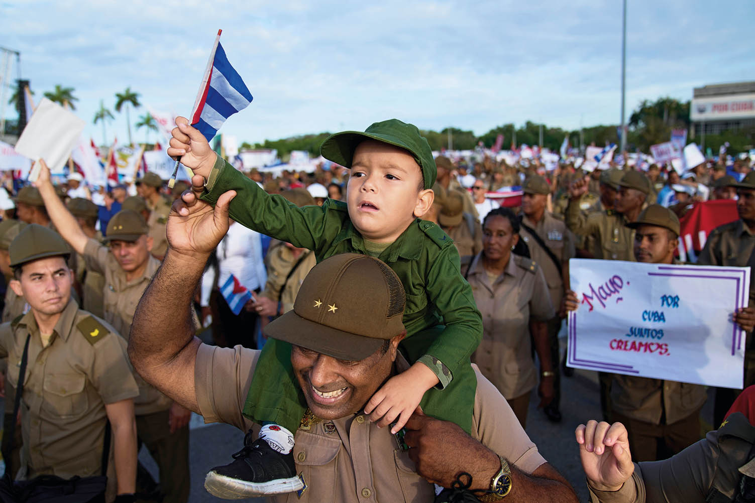 5 月 1 日,在古巴首都哈瓦那革命广场,一名儿童手持国旗参加“五一”国际劳动节集会游行
