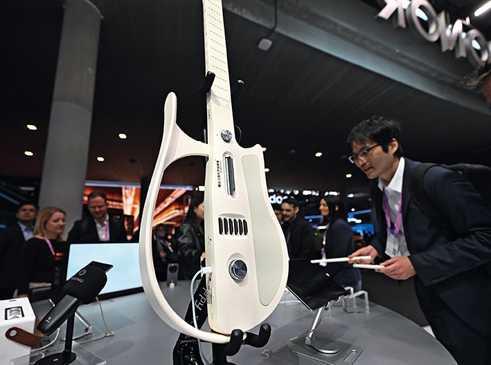 2026 年 3 月 3 日,在西班牙巴塞罗那会展中心,参观者体验智能乐器