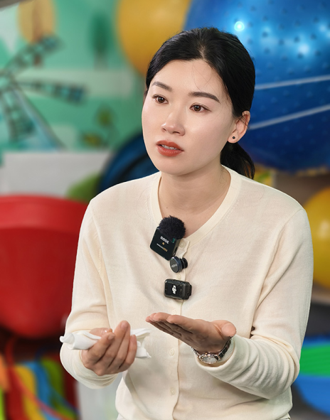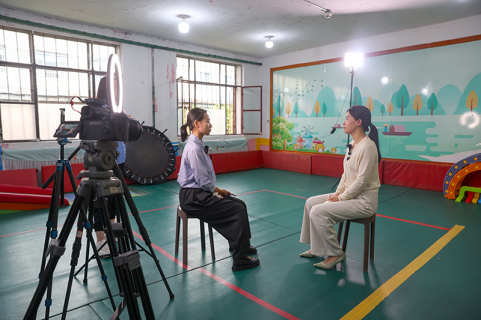 2025年8月30日,黑龙江省密山市儿童康复中心校长于姗姗采访。新华网记者 钟奕 摄
