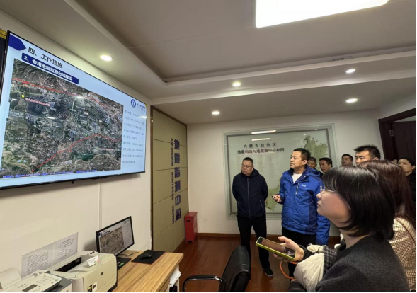 工作人员向采访团介绍将活动断层避让要求纳入中心城区国土空间总体规划有关情况。新华网发