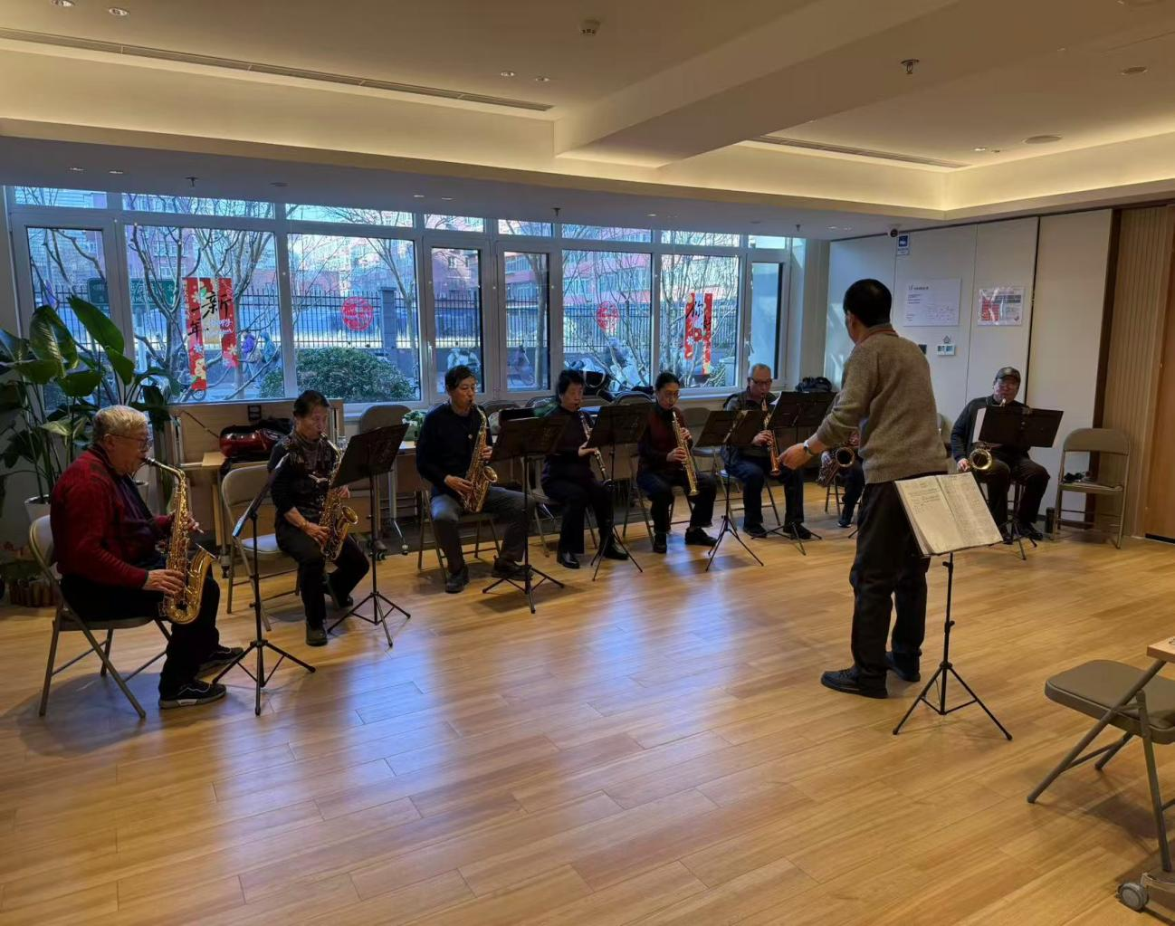 12月17日,社区居民在和平里街道养老服务中心“老年大学”演奏萨克斯。新华网记者 张爽 摄