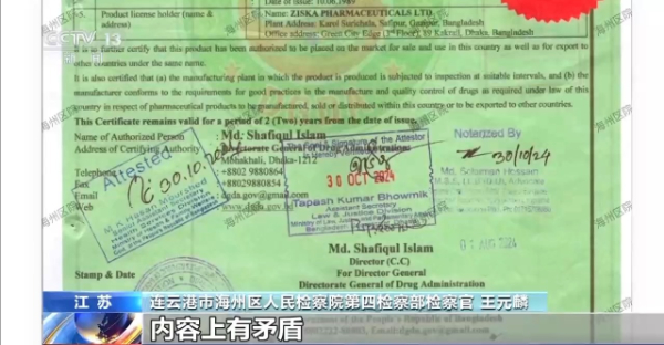 检察长 肖楠:这一份文件有前后两部分,第一部分是生产文件,在任何情况下不允许在该国销售,后半部分的文件才是用于出口的文件,而且仅用于出口中国。前面的文件就是能否证实它在该国合法上市的问题。这个案件在办理过程当中,毛某仗着核心的证据都是在境外,自认为司法机关是无法获取证据,所以他自始至终不认罪。我们获取境外证据后,出示给毛某看,在铁的证据面前,他最终自愿认罪认罚。