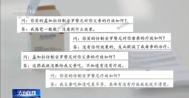 在国内流通以后,因为下游层层加价,一般患者购买到这款药物的价格在1500元左右一盒,但一盒的药量是正版的三倍。警方找到大量的患者家属进行调查,他们纷纷表示,这款所谓的“救命药”,却并没有什么明确的治疗效果。