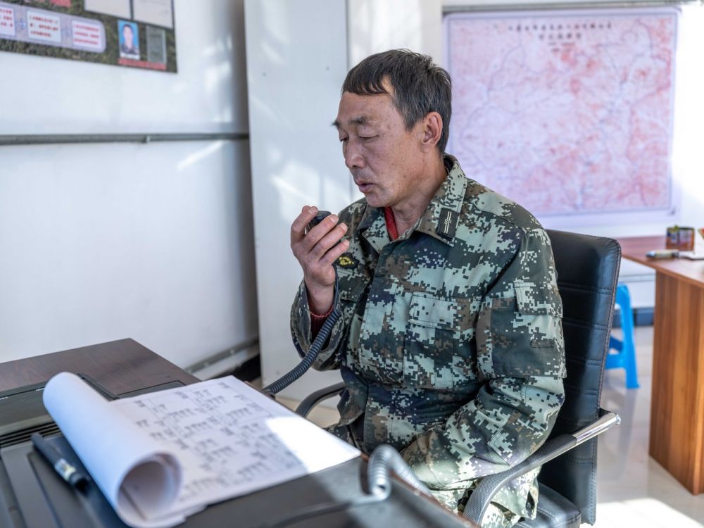 9月28日,在内蒙古呼伦贝尔市牙克石市绰河源镇摩天岭瞭望站,孙忠全在汇报当日山中情况。新华每日电讯记者 马金瑞 摄
