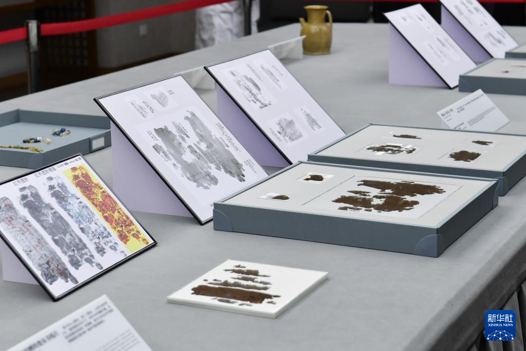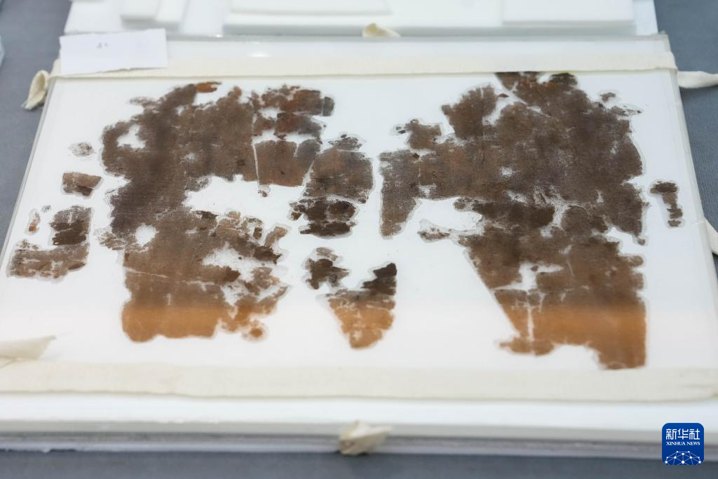 这是9月11日在湖南省博物馆拍摄的部分长沙子弹库战国帛书。