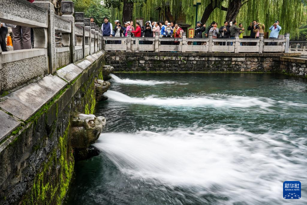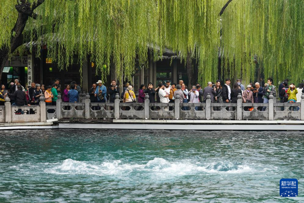 受近期降雨影响,山东省济南市群泉奔涌,吸引游客前来观赏。