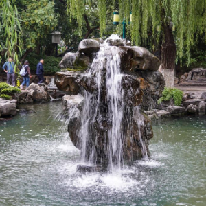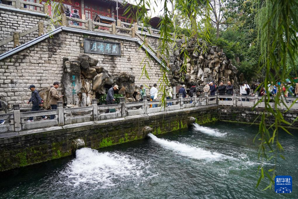 10月15日,游客在济南趵突泉公园观光游览。趵突泉实时水位达到30.32米,刷新1966年以来的最高水位纪录。
