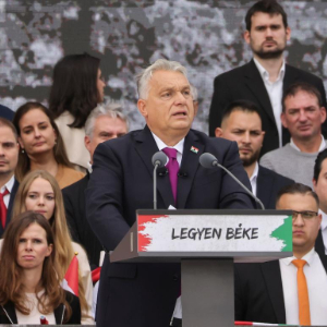10月23日,匈牙利总理欧尔班在首都布达佩斯举行的一场集会上讲话。