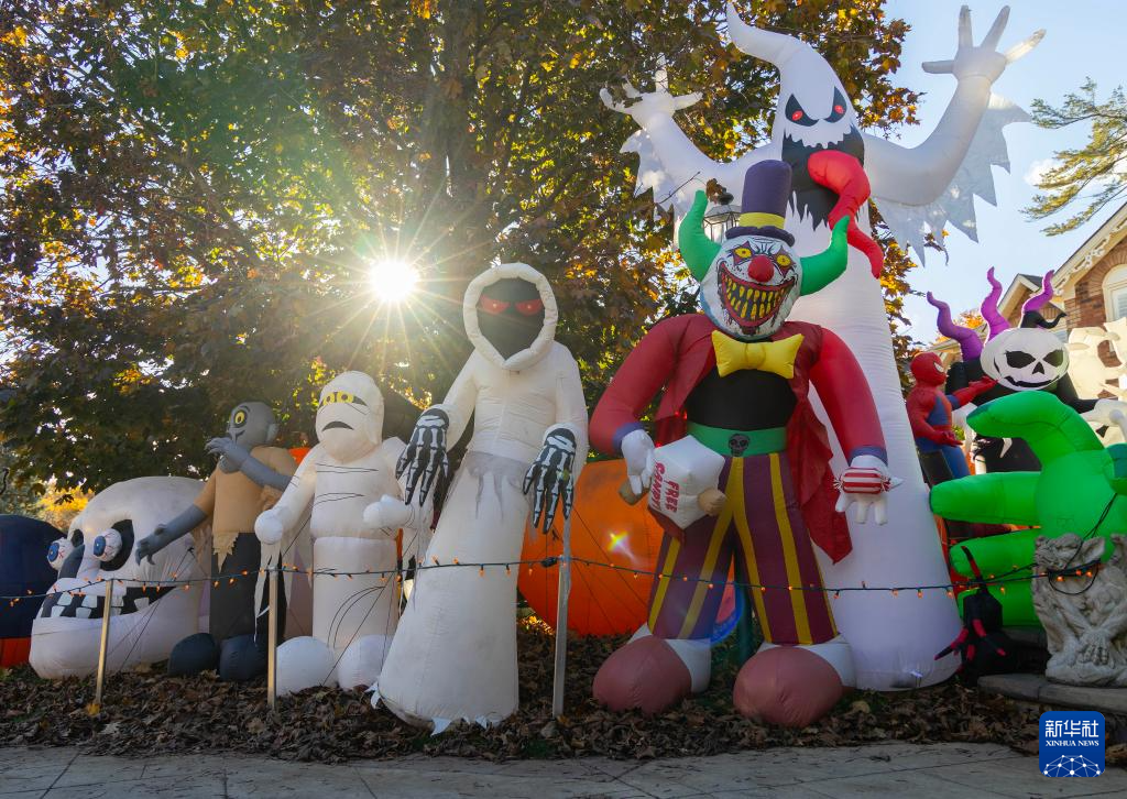 万圣节将至,加拿大安大略省奥克维尔的不少居民用各类装饰品布置房屋前的庭院,以烘托节日气氛。