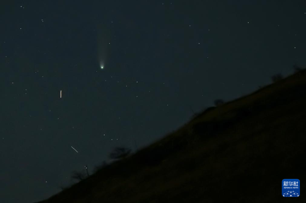这是10月28日晚在北马其顿首都斯科普里郊外拍摄到的莱蒙彗星。