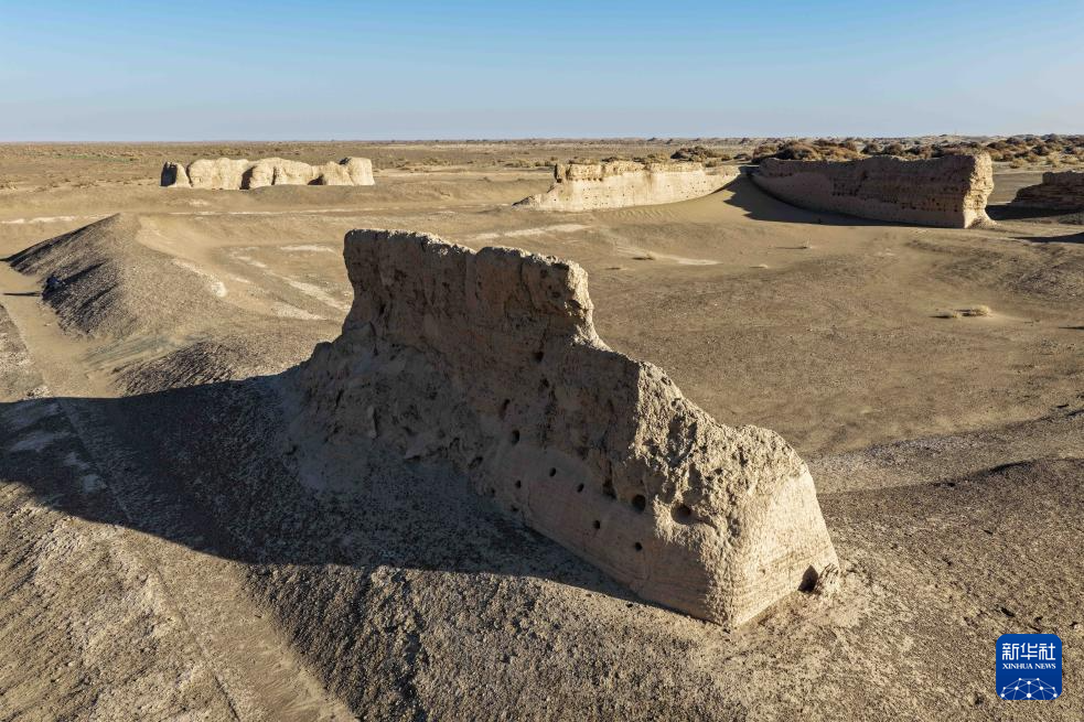 这是11月3日在内蒙古阿拉善盟额济纳旗拍摄的居延遗址中的汉代甲渠候官遗址(无人机照片)。