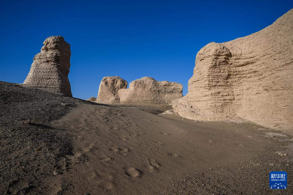 这是11月3日在内蒙古阿拉善盟额济纳旗拍摄的居延遗址中的唐代大同城遗址。