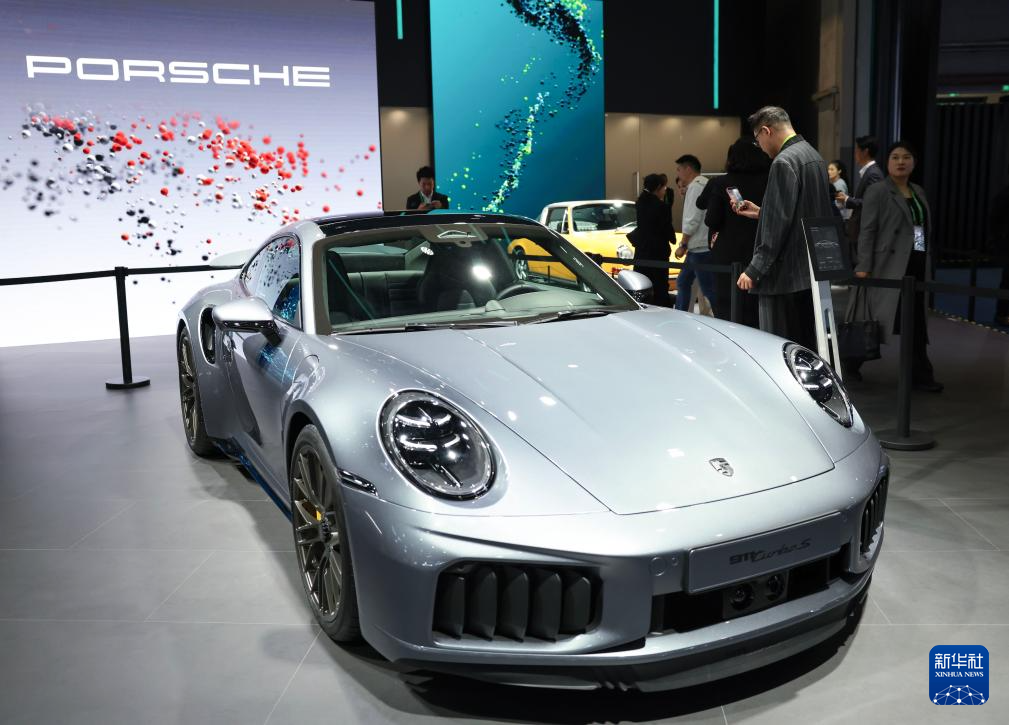 11月6日在进博会汽车及智慧出行展区大众汽车展台拍摄的新款保时捷911Turbo S。这是该产品在亚洲首发。
