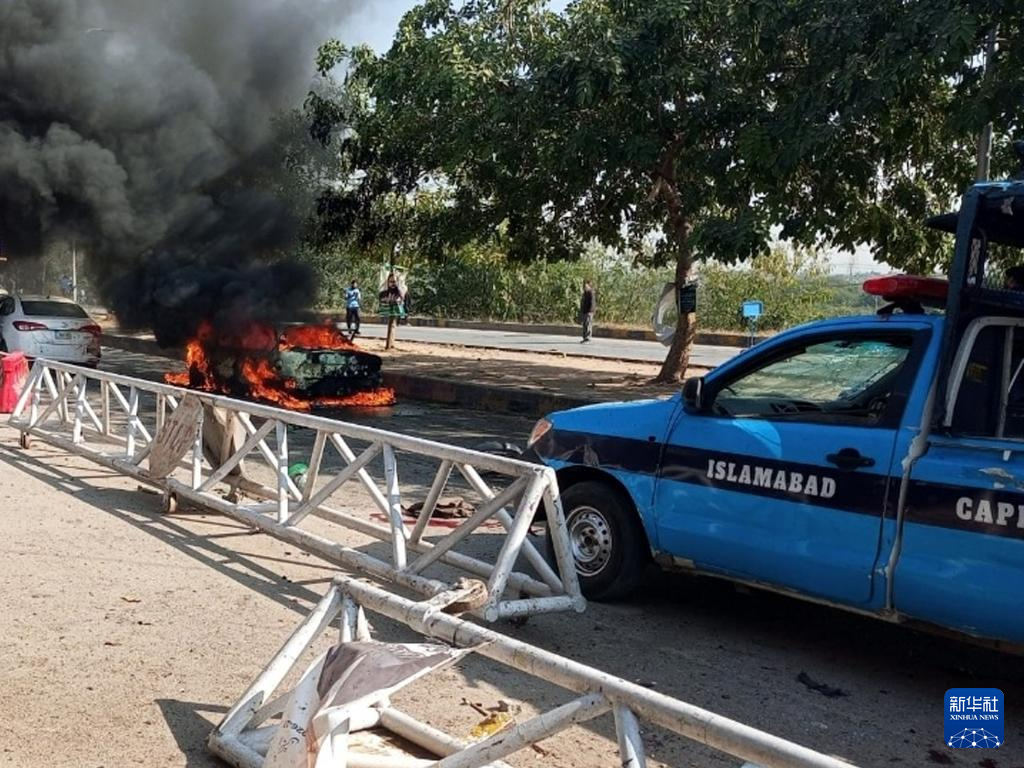 这是11月11日拍摄的位于巴基斯坦首都伊斯兰堡的爆炸现场(手机照片)。