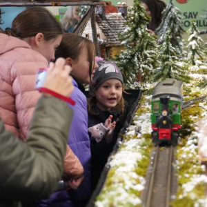 11月11日,儿童们在美国纽约植物园举行的节日小火车展预展上参观。