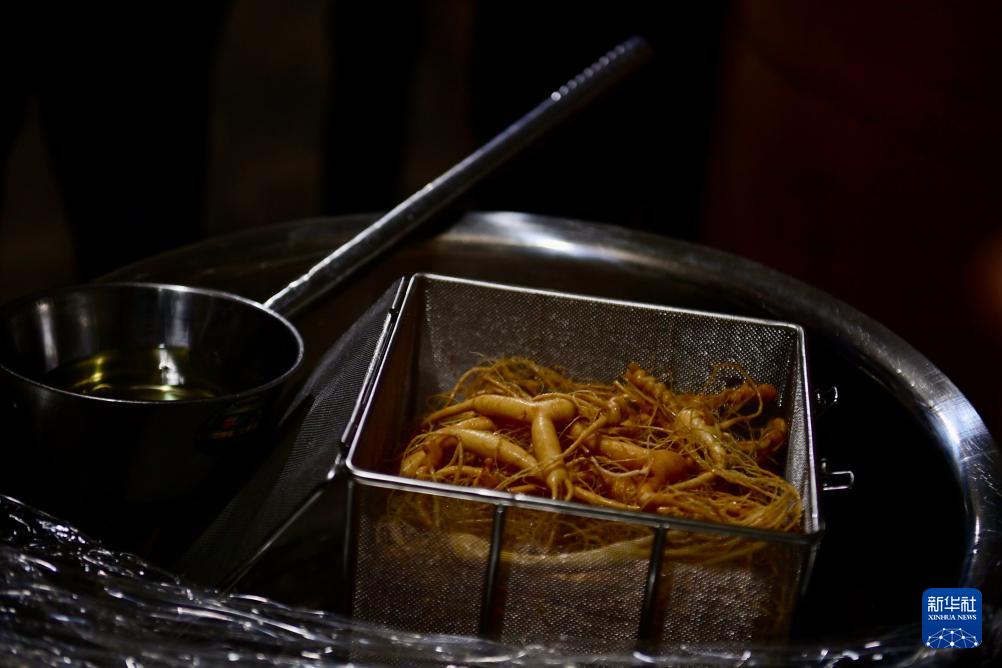 这是10月11日在辽宁省丹东市宽甸满族自治县的一处人参酒厂内拍摄的人参酒。