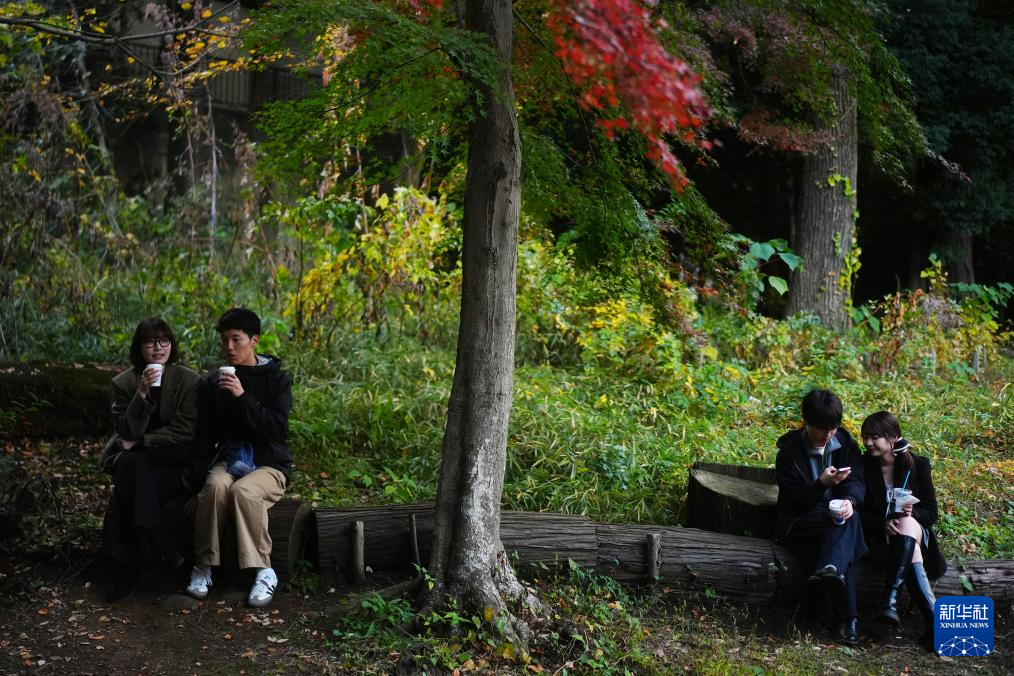 11月17日,一名男子在日本东京的一家咖啡店外休憩。