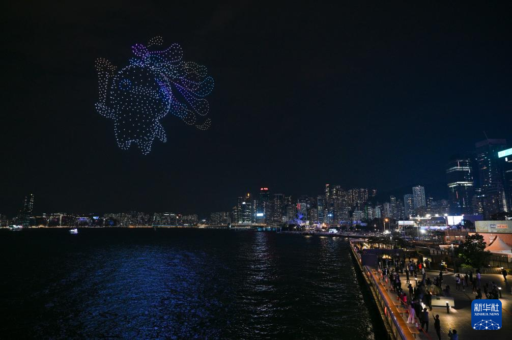 11月18日,“体育力量 闪耀香江”大型无人机表演在香港维多利亚港举行。