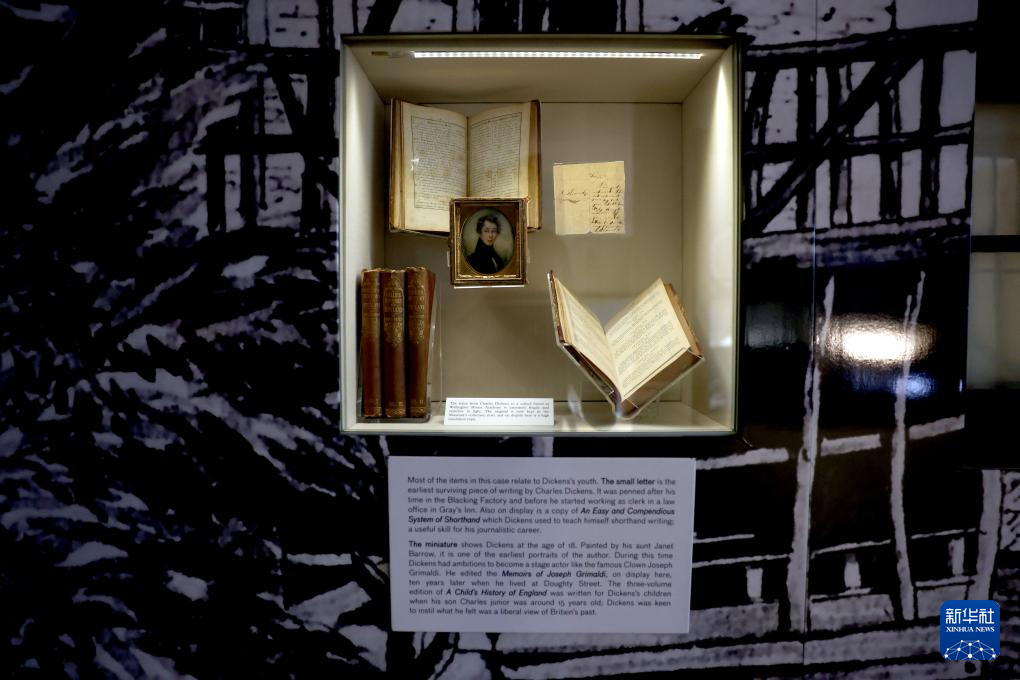这是11月17日在英国伦敦狄更斯博物馆拍摄的狄更斯画像和展品。