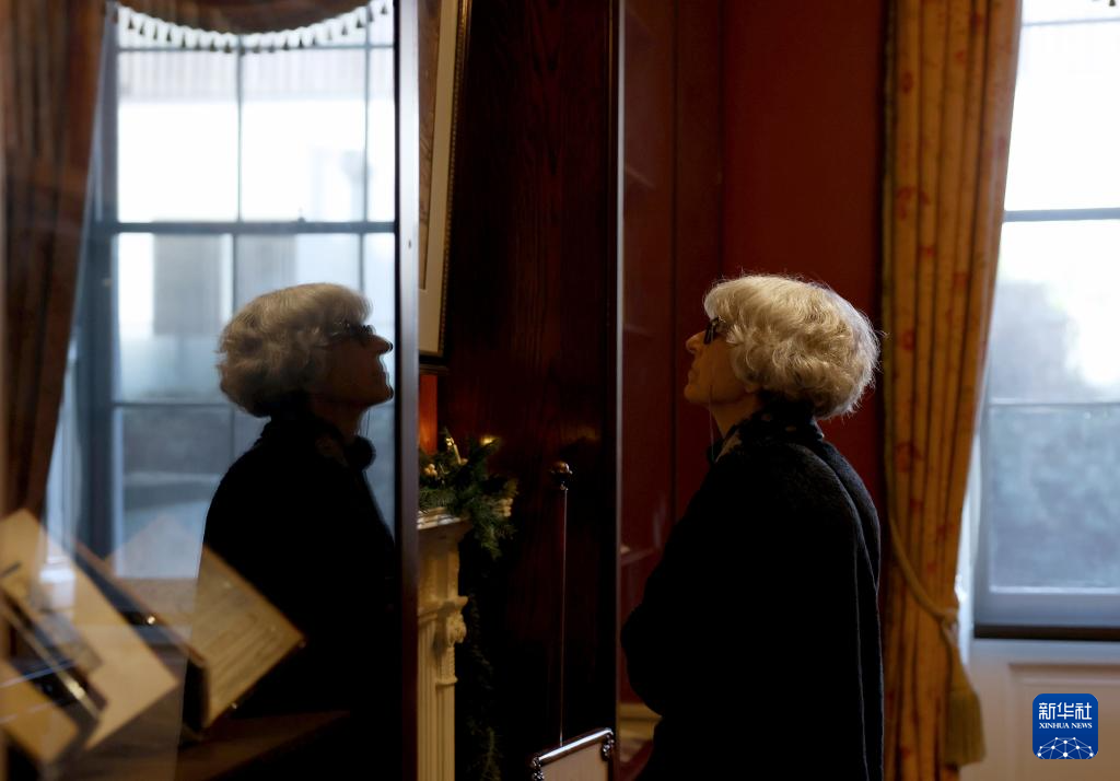 11月17日,一名女子在英国伦敦狄更斯博物馆的书房内参观。