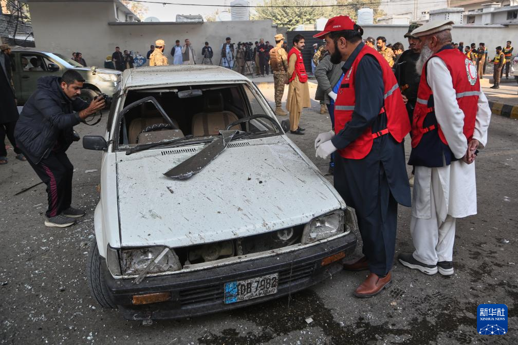 11月24日,安全人员在巴基斯坦白沙瓦查看自杀式爆炸袭击现场。