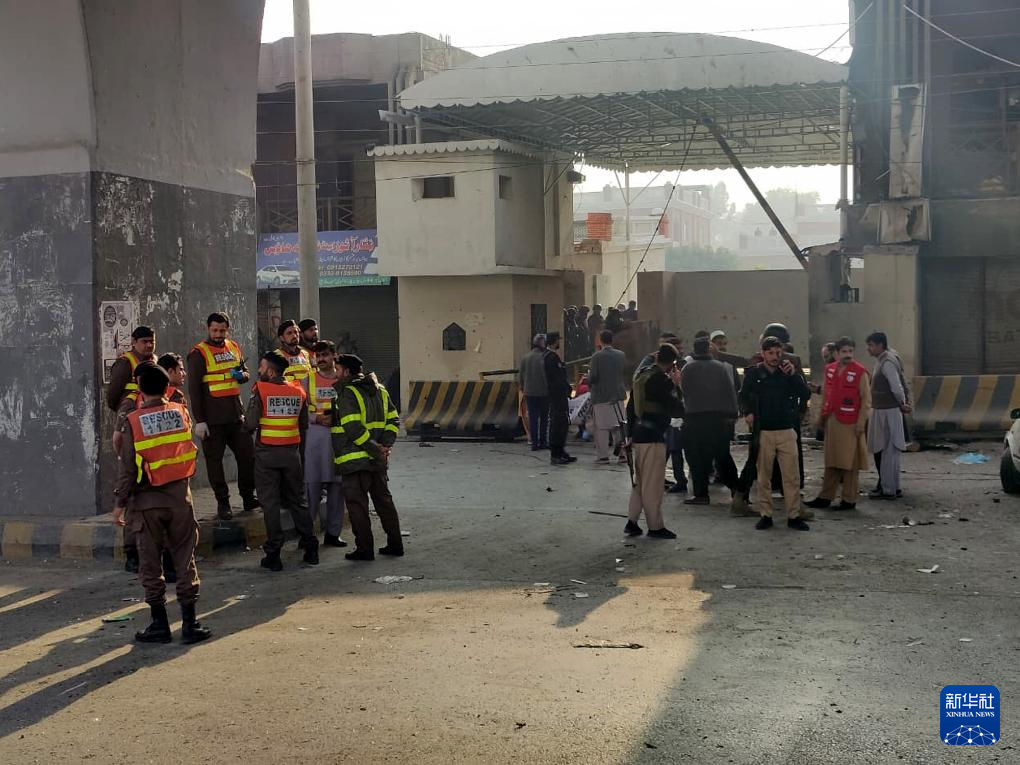 这是11月24日在巴基斯坦西北部开伯尔-普什图省首府白沙瓦拍摄的爆炸袭击现场。