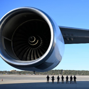 12月3日,在委内瑞拉首都加拉加斯附近的迈克蒂亚西蒙·玻利瓦尔国际机场,士兵在一架从墨西哥起飞的遣返移民航班旁警戒。