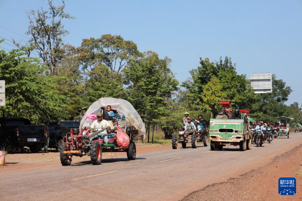 这是12月8日在柬埔寨柏威夏省边境地区拍摄的撤离的居民。