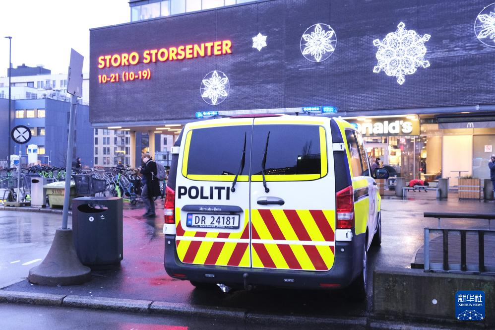 12月8日,一辆警车停在挪威首都奥斯陆的斯托罗购物中心外。