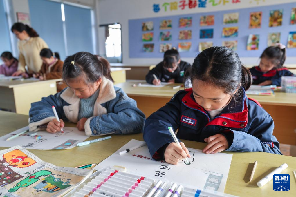 12月9日,诸暨市暨南街道中心学校王家井小学的学生绘制法治宣传画。