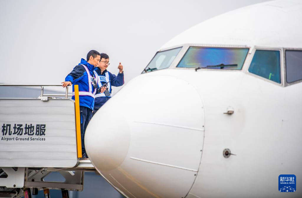12月9日,工作人员进行中国邮政“重庆至仰光”国际货邮航线首航货机起飞前的准备工作。