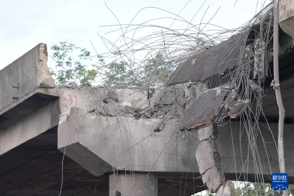 这是12月13日拍摄的柬埔寨菩萨省边境地区遭到泰军轰炸的桥梁。