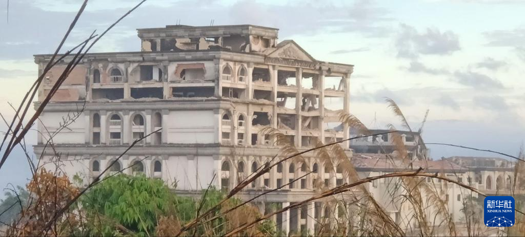 这是12月13日拍摄的柬埔寨菩萨省边境地区被泰军炸毁的建筑。
