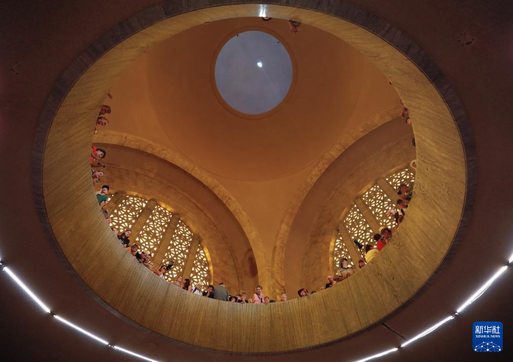 12月16日,人们聚集在南非比勒陀利亚的先民纪念馆内等待正午12点的阳光照在该馆的纪念碑上。