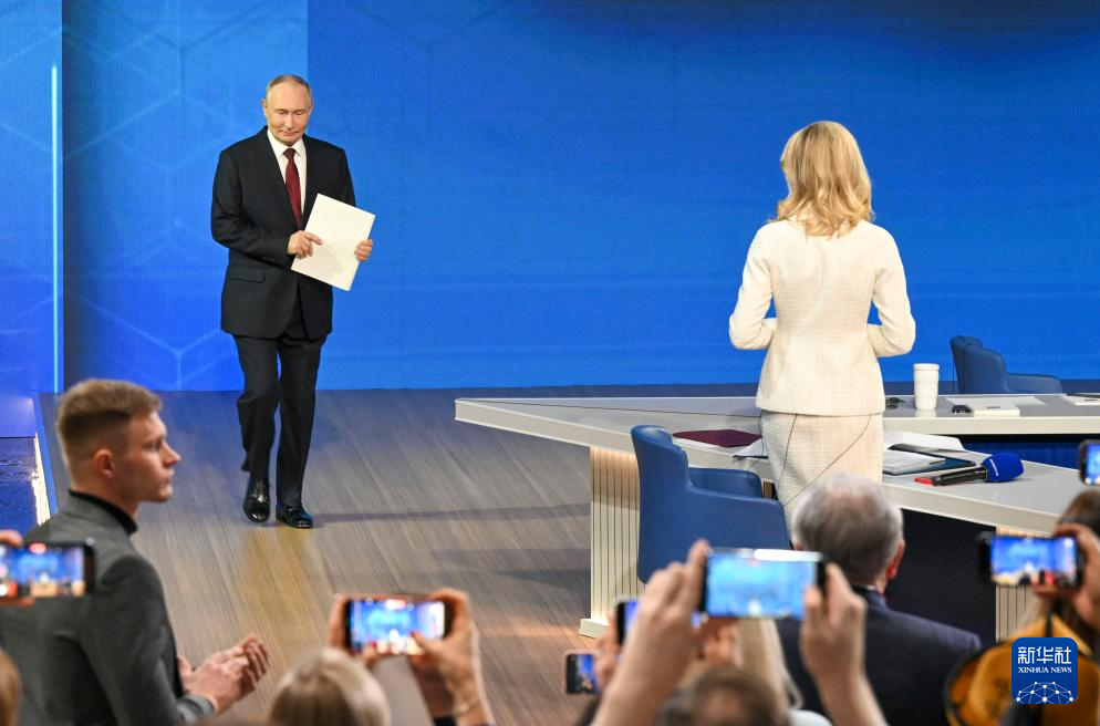 12月19日,在俄罗斯首都莫斯科,俄罗斯总统普京在“年度盘点”活动上回答新华社记者提问。